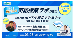 英語教育分野でテクノロジーを活用したソリューションを展開するアイード株式会社(本社:東京都新宿区、代表取締役:窪田優希、以下「アイード」)は、ハーバード教育大学院在学中の上村洸貴先生(長崎北高校教諭)とともに、生成AIを活用した授業実践を共有・議論し、英語教育の新たな可能性を探るオンライン交流イベント「英語授業ラボ」を開催します。